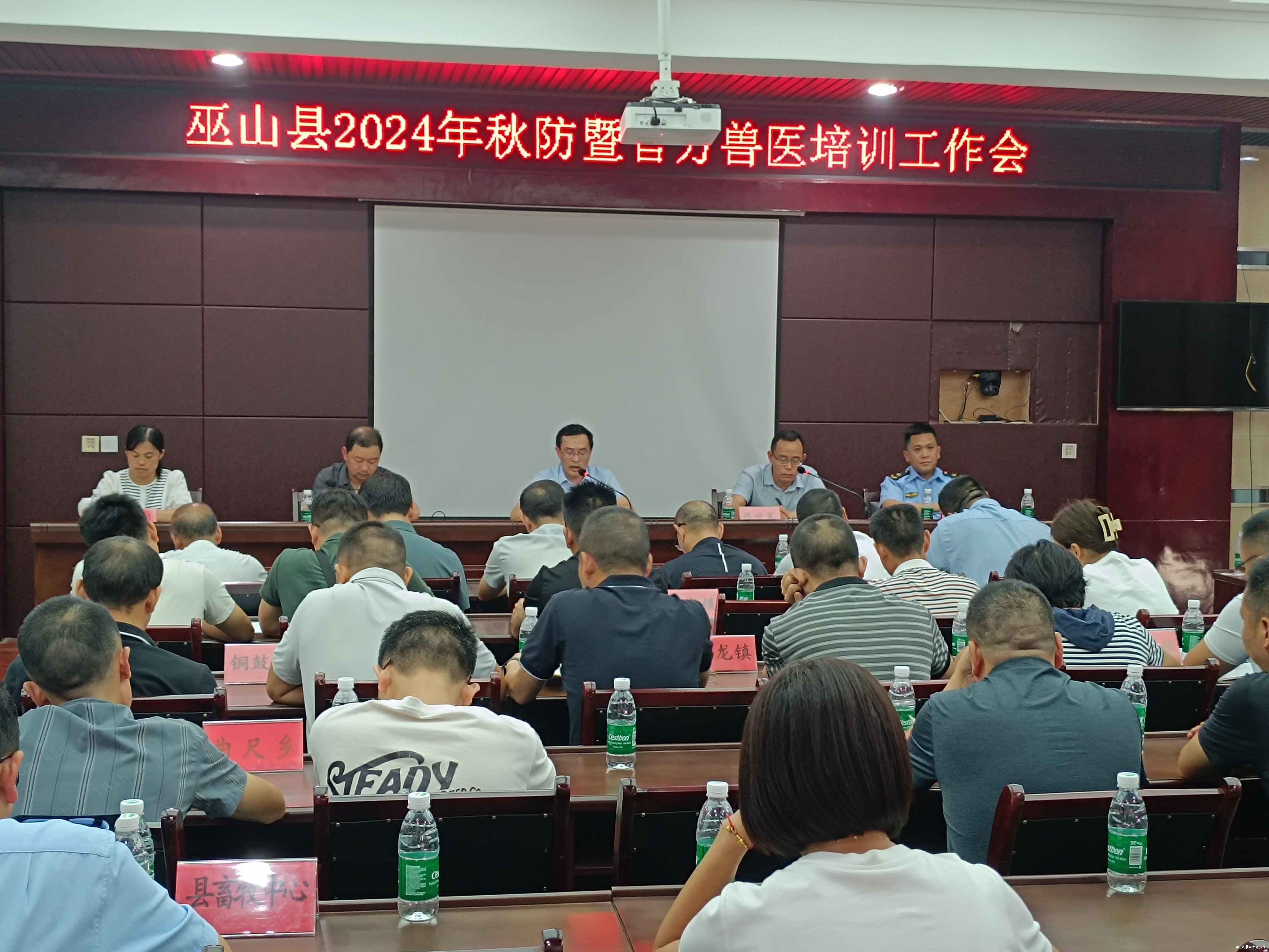 9月19日,巫山县农业农村委组织召开2024年秋防暨官方兽医培训工作会议。25个涉农乡镇(街道)分管领导、畜牧兽医工作者、官方兽医,县畜牧产业发展中心班子成员,县农业综合行政执法支队负责人,县畜牧和水产技术服务中心(县动物疫病预防控制中心)全体干部职工,以及人保财险、阳光财险、平安财险巫山支公司负责人,重庆盛展生物科技有限公司巫山负责人参加会议。