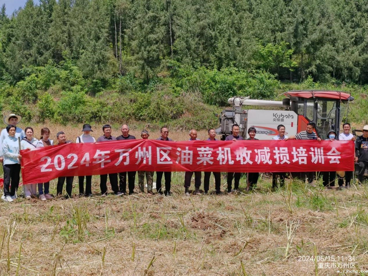 5月15日,重庆市农机总站联合万州区农业农村委在万州区甘宁镇冠峰村开展2024年重庆市油菜机收减损监测暨油菜机收减损培训会。重庆市农机总站、重庆市农技总站、市农科院农机所、西南大学农学院、万州区农业农村委、江苏国机常林公司负责人及部分油菜种植大户共计三十余人参加。