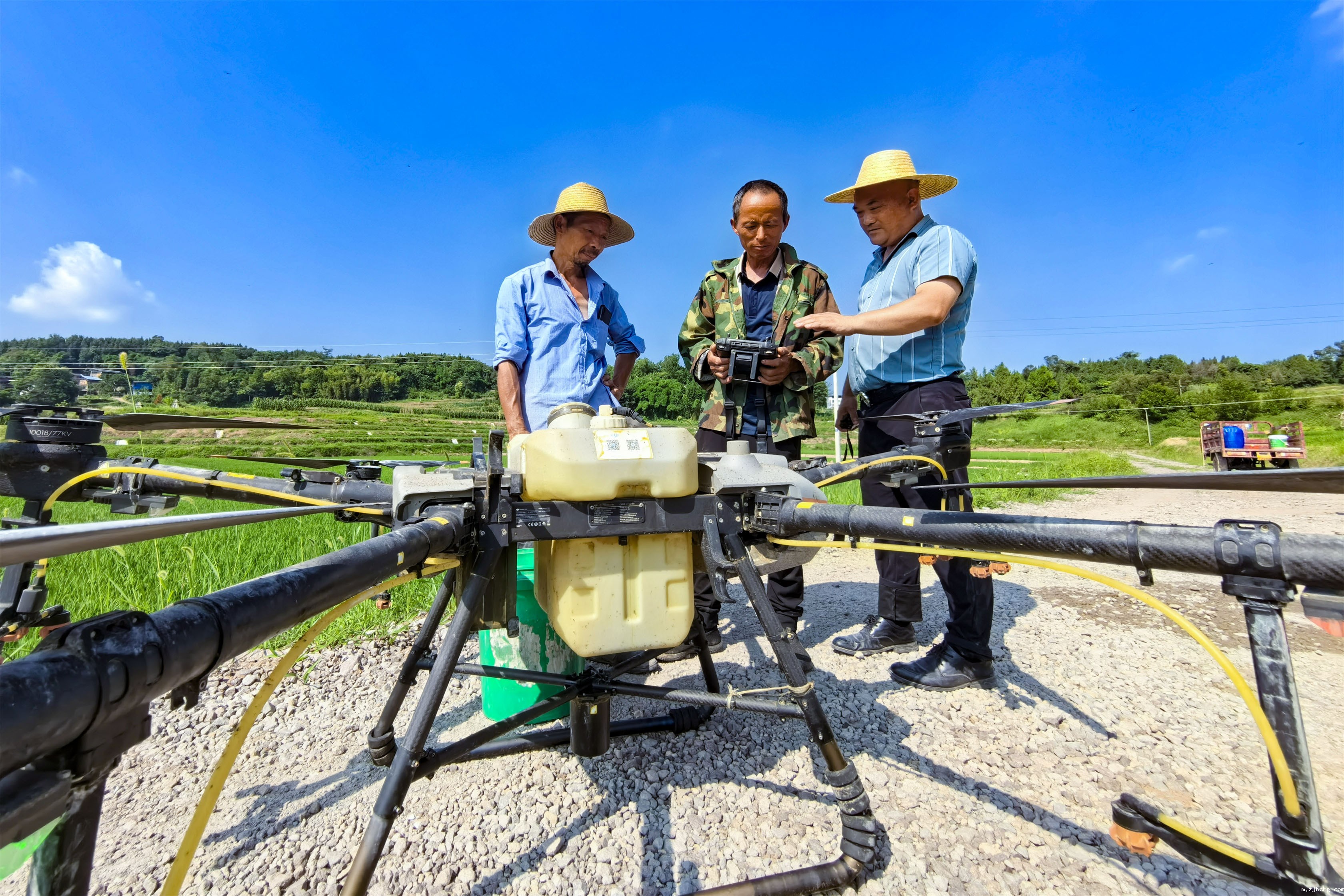“药品与水的比例要适中,操控无人机要留出足够的安全距离……”一大早,村民便在万州区综合农事服务与应急中心工作人员冉世田的指导下,操控植保无人机为水稻喷洒防范病虫害的药品。