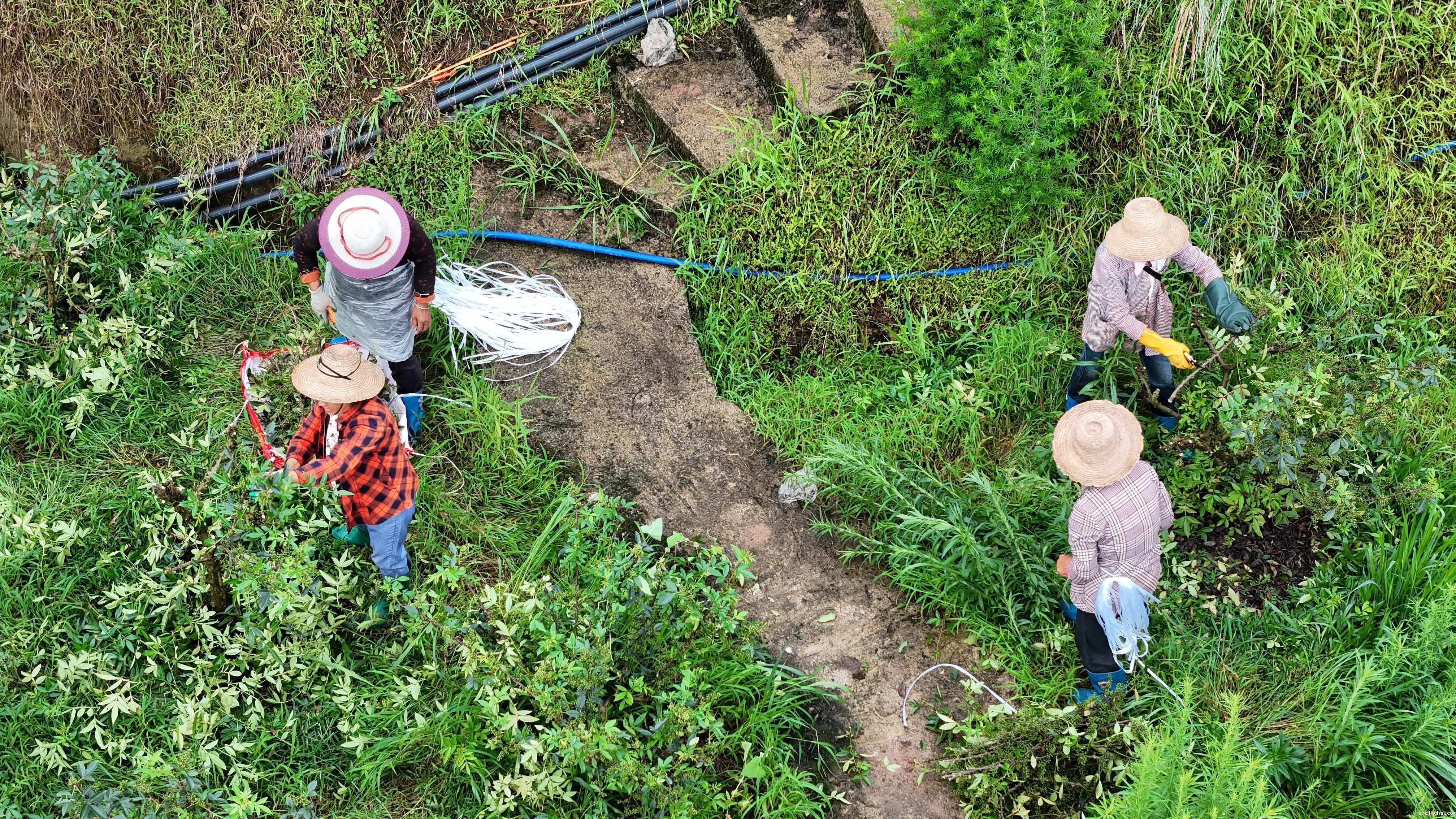 由于花椒的种植区域大多位于丘陵山地,山高坡陡的地形地貌让成捆的带枝鲜椒快速转运成为种植户的心头难题。为应对这一情况,今年后叶镇在沿用去年单轨运输“小火车”的基础上,新增无人机进行田间运输保障,打通花椒田地到加工储备仓库的“最后一米”。