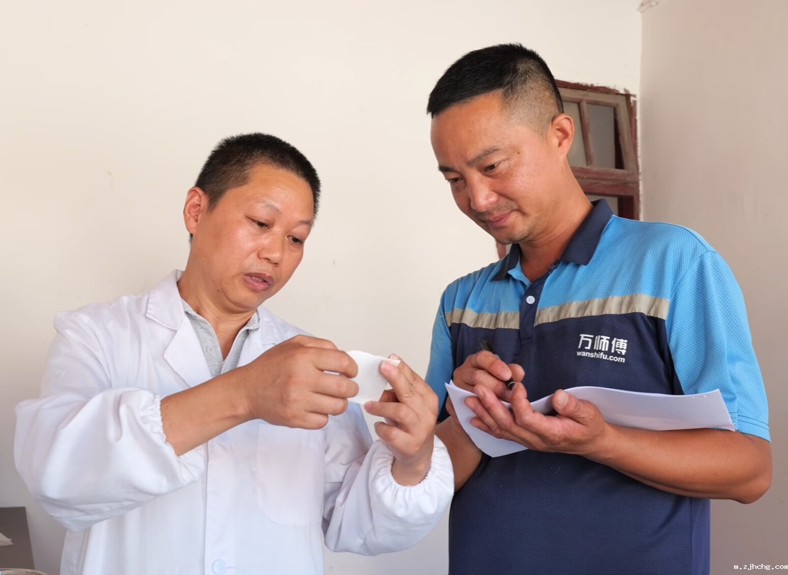 8月15日上午,在铜梁区太平镇粮食烘干中心检测室里,铜梁区储备粮公司检验人员与粮食烘干中心工作人员一道,正在抽样检测运进烘干中心预备烘干的稻谷。