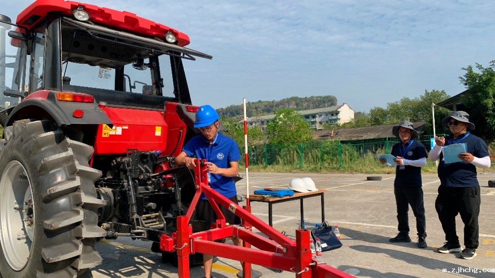 农机驾驶赛项参照全国农业行业职业技能大赛的标准和要求设置竞赛项目,比赛包括理论知识考试和实操技能考核两个方面。其中,实操技能考核主要考核农机驾驶操作人员驾驶联合收割机和拖拉机的本领,他们须在规定时间内分别完成机具入库出库、机耕道通行等,并在模拟田块进行收割作业和耕地作业操作。