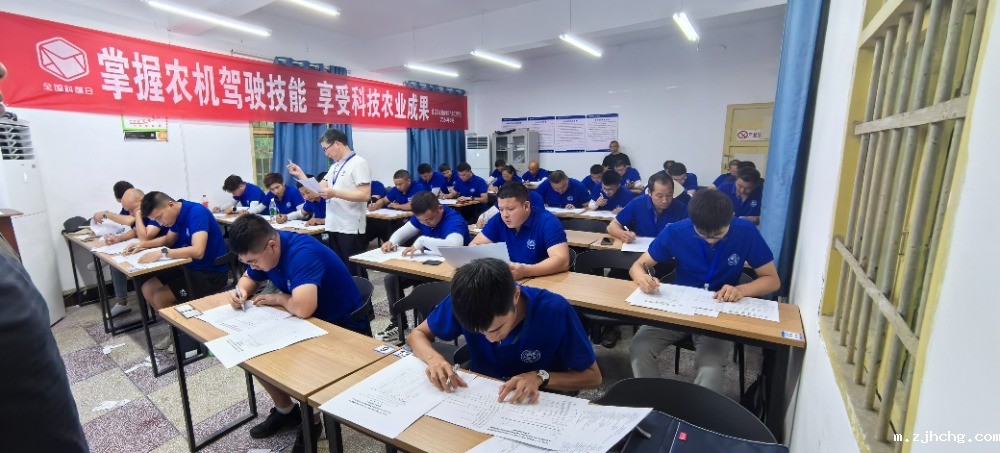 ▲农机手们正在进行理论考试。记者 赵伟平 实习生 吴金锴 摄