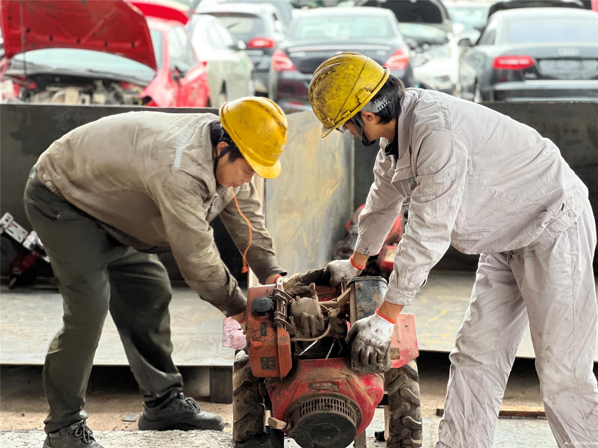拆解现场,工作人员仔细对报废机具的型号、发动机号、铭牌、机架号等信息进行详细核对,拆解过程现场拍照存档,做到程序不减、步骤不漏。