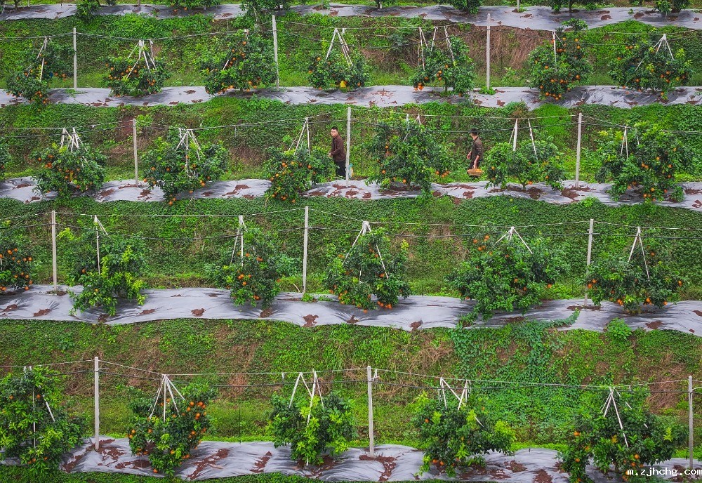 12月18日,渝北区大盛镇青龙村的柑橘种植基地内,村民们正忙着管护果树,为柑橘上市做准备。