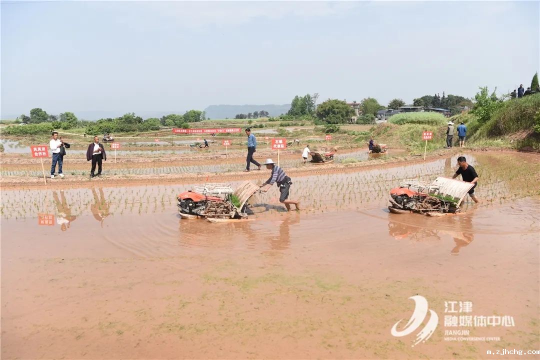 另一边的几块水田中,机械化插秧技能大比武也在热火朝天地进行着,村民们熟练地驾驶着水稻插秧机在田间来回穿梭,一株株秧苗整齐有序地滑落,精准地插入田间,引得群众纷纷拍手叫好。