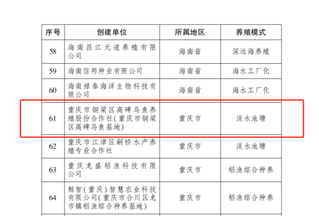 近日,农业农村部公布了2023年国家级水产健康养殖和生态养殖示范区名单,重庆市铜梁区高碑乌鱼养殖股份合作社成功入选。1月23日,铜梁区农业农村委员会杨晓林副主任、区水产站负责人陈康及少云镇相关同志为该合作社进行了授牌。