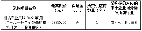柑橘产业集群2022年项目(“三品一标”示范基地提档升级——物资采购)采购公告