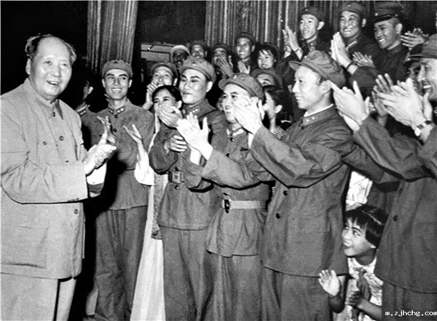1963年7月31日晚,毛泽东观看沈阳军区抗敌话剧团演出的话剧《雷锋》后接见演员
