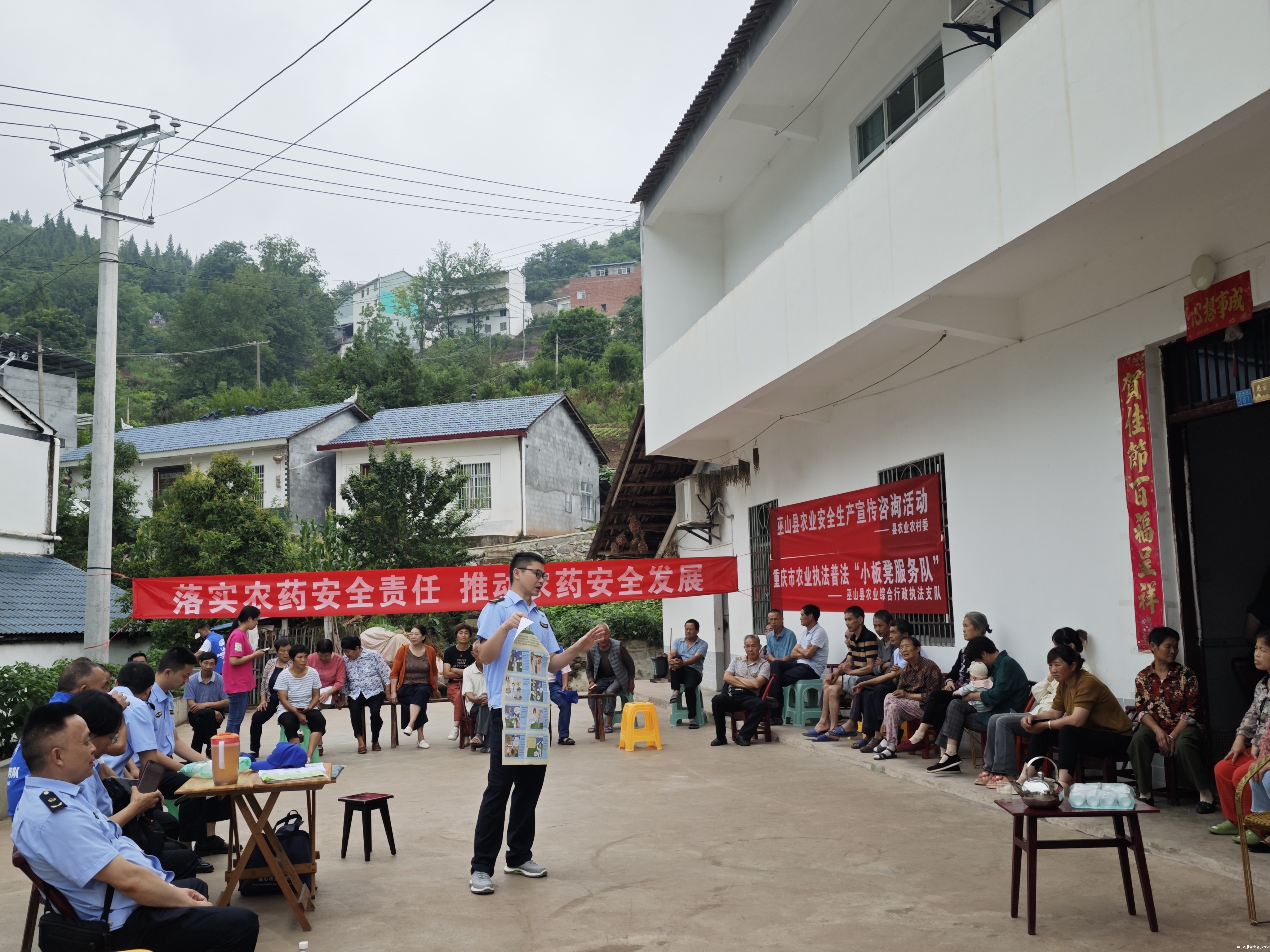 6月20日,巫山县农业综合行政执法支队会同县植保站、农委审批科来到我县农村法治宣传教育基地—官渡镇杨林村,开展重庆市农业执法普法“小板凳服务队”宣讲暨农业安全生产宣传咨询活动。