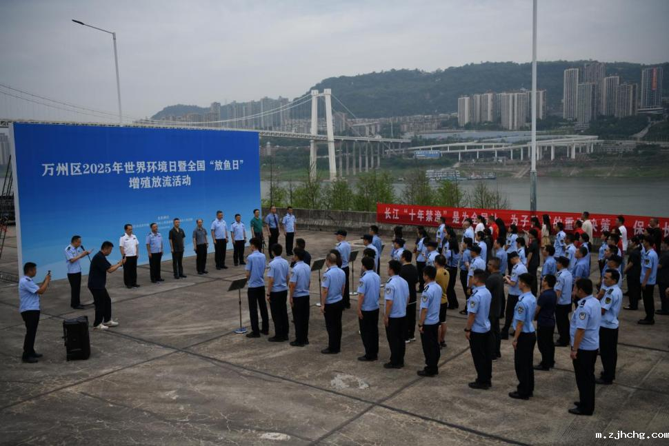 6月5日上午,万州区2025年世界环境日暨全国“放鱼日”增殖放流活动在长江二桥战备码头顺利举行,市农业综合行政执法总队有关领导到场指导,区委农业农村工委委员、区农业综合行政执法支队支队长何光成致辞,区检察院副检察长喻晓峰讲话,区人大农业农村工委、区政协农业农村委、区公安局、区农业农村委、区市场监管局、区法院、区检察院、长航公安万州分局等单位相关负责人、列队人员以及陈家坝街道市民代表共110人参加活动。