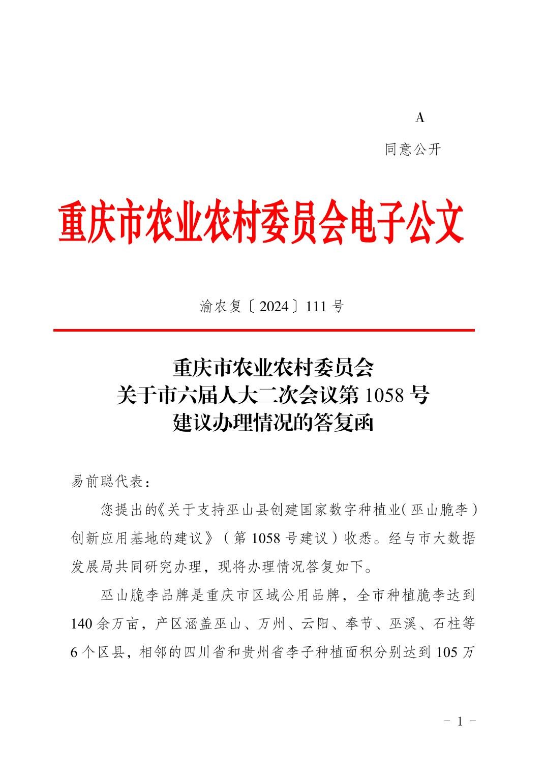 ac米兰足球直播入口关于市六届人大二次会议第1058号建议办理情况的答复函