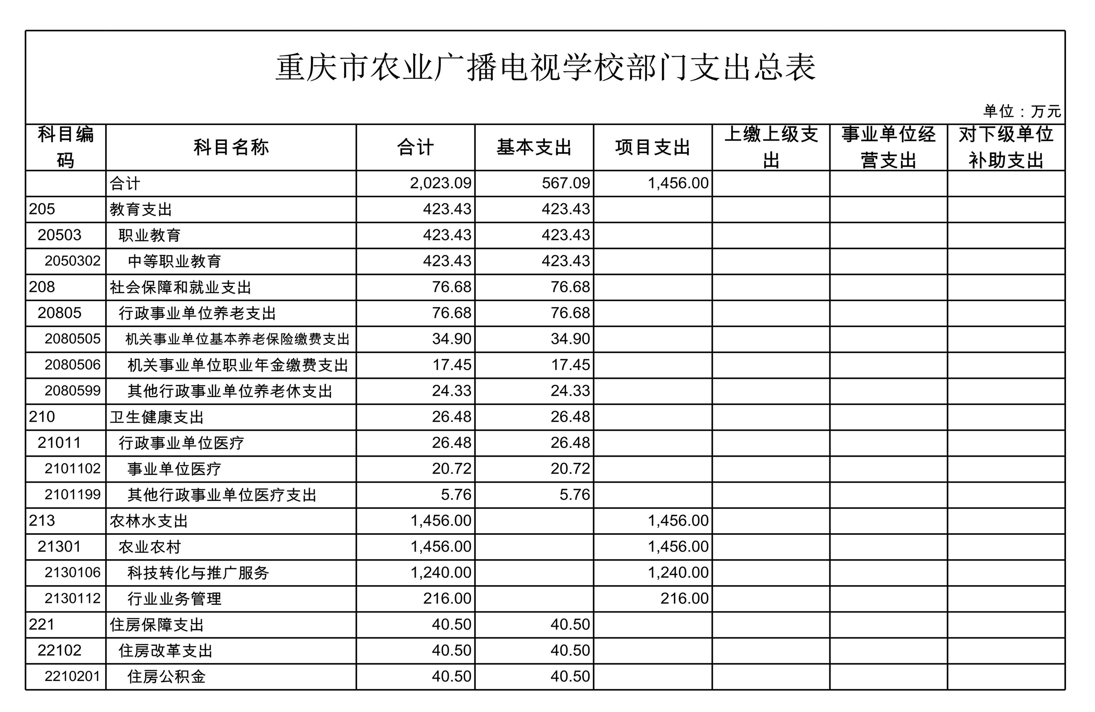 (二)支出预算:2021年年初预算数2023.09万元,其中:教育支出预算423.43万元,社会保障和就业支出预算76.68万元,卫生健康支出预算26.48万元,农林水支出预算1456万元,住房保障支出预算40.5万元。支出预算较2020年增加155.37万元,主要是基本支出预算减少27.63万元,项目支出预算增加183万元。