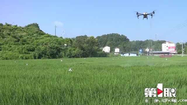 水稻专业化统防统治,就是在统一的时间、采用统一的药品,对病虫害进行防治。在忠县新立镇文笔社区,几台植保无人机正在稻田上空穿梭,十几分钟后,喷洒农药、投放赤眼蜂卵球的工作就已经完成。